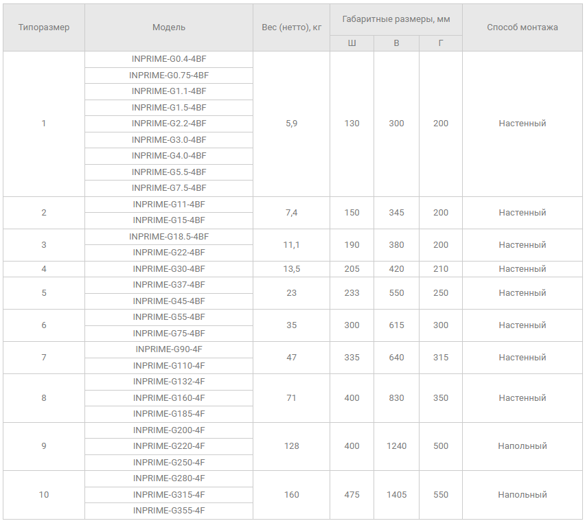 Преобразователи частоты серии INPRIME функционально соответствуют уровню европейских брендов, а книжная форма корпуса обеспечивает компактные размеры. Серия подходит для управления высокодинамичными нагрузками и применения в сложных приводных системах. Серия предназначена для управления трехфазными асинхронными электродвигателями и синхронными двигателями с постоянными магнитами с диапазоном мощностей от 0.4 до 630 кВт.
